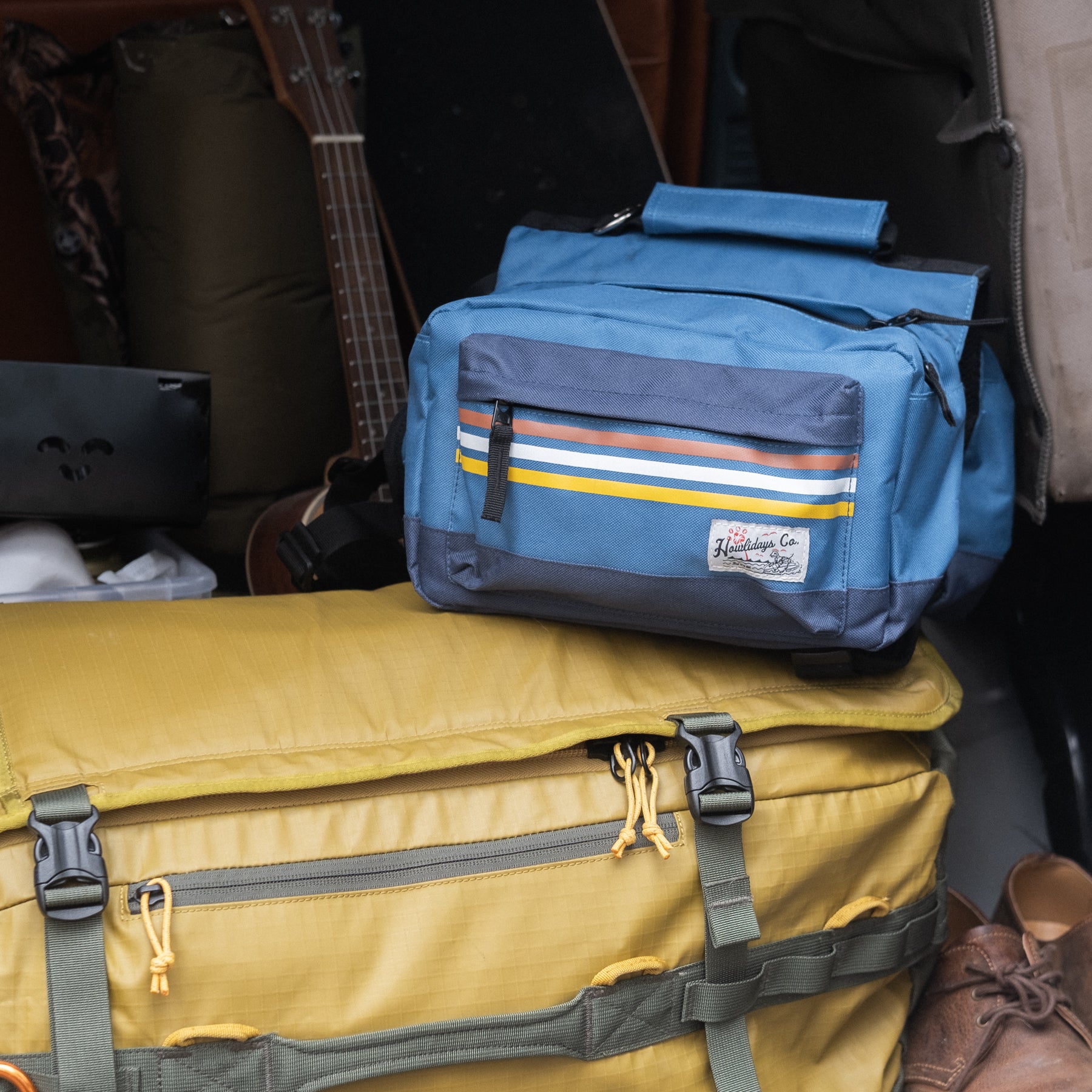 Howlidays Co. Rad to the Bone Dog Backpacks are designed for all kinds of adventures. Made from waterproof and durable polyester, they feature unique prints and a woven label of a surfing skull dog for a stylish and dynamic look. With two large compartments and 3D front pockets, they easily accommodate your dog’s essentials. The adjustable clip-fastened strap design allows you to adjust the chest and waist size effortlessly, ensuring easy on and off for your dog. Whether it’s day trips up the coast or hardcore backpacking trips, they are the perfect choice to save you the hassle of carrying your dog’s stuff yourself and to showcase your and your dog’s sense of style.